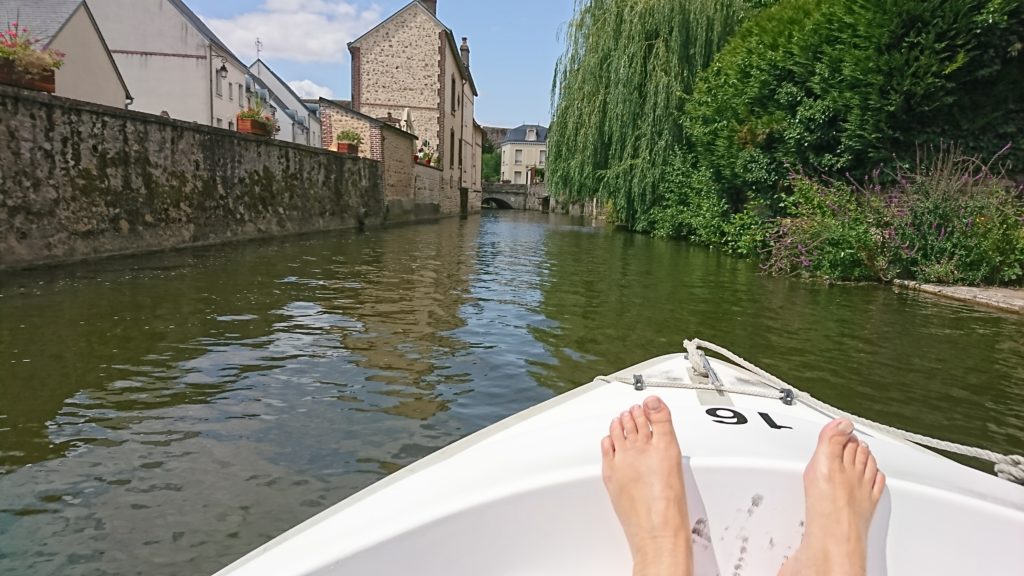 Après un repas très copieux au restaurant « La Herse », nous avons parcouru, détendu(e)s et sous un soleil radieux, la ville au fil de l’eau, sur des bateaux électriques, très sensibles à manœuvrer (voir photo), ce qui a valu quelques moqueries à tous ceux qui s’y sont collés.