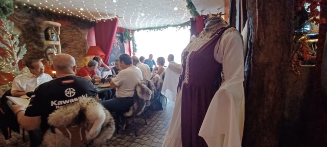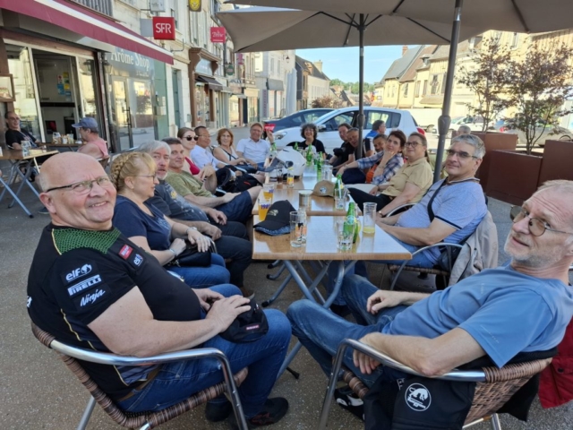 Pour cette troisième balade de 2024, nous sommes partis à 12 motos et 18 personnes, sous un ciel tout bleu, direction Saint-André-de-l’Eure pour la pause café, par la N12 puis les petites routes. Nous avons repris les motos pour rejoindre Conches-en-Ouche, où nous attendait un restaurant atypique, très sympathique et délicieux après l’apéritif offert par la FFMC78 : le Médiéval.