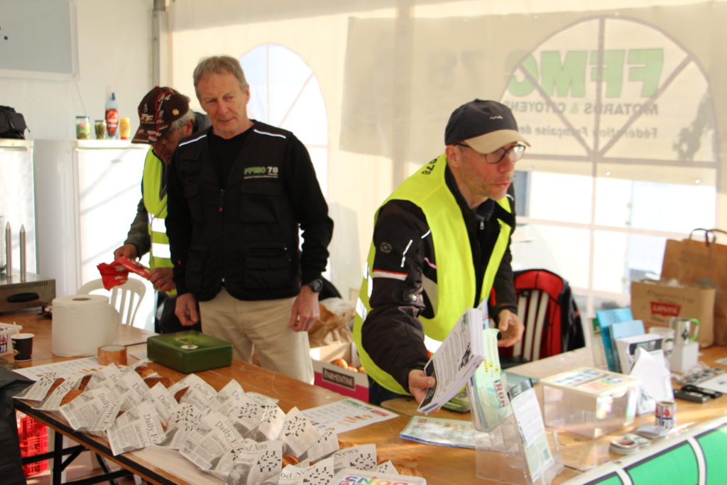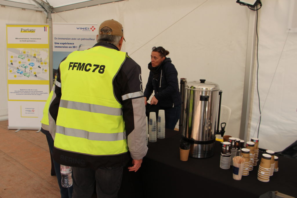 Un point clé du relais est la buvette où, selon l’heure, le bénévoles de la FFMC 78 vendent à petit prix viennoiseries, sandwiches, hot dogs et boissons en tous genre.