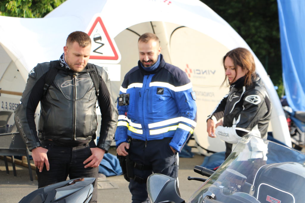Sur le relais Calmos, ils sont là pour créer du lien avec les motards et possiblement sensibiliser à la sécurité routière. Leur action n’est en rien répressive !
