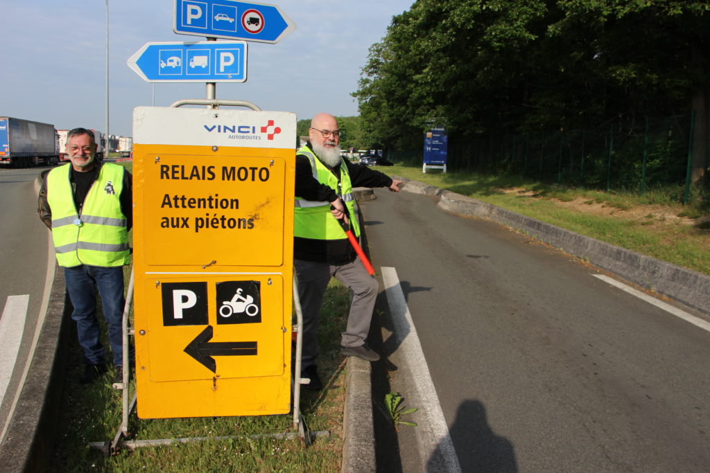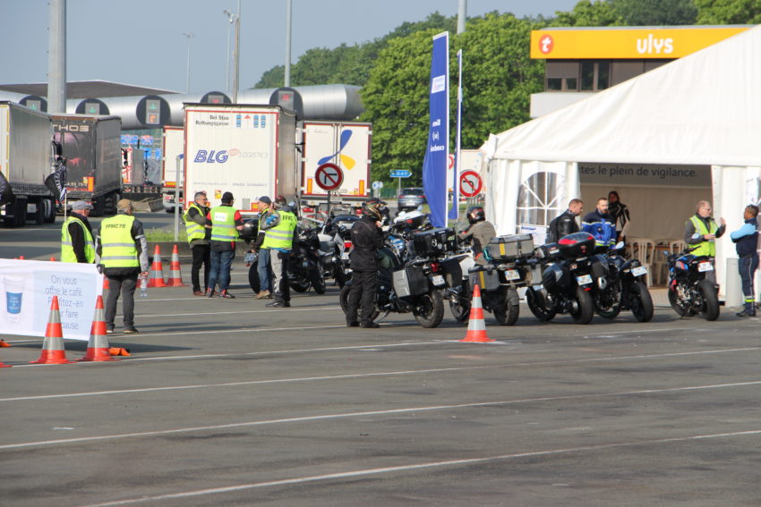 Et à l’entrée du parking les bénévoles de la FFMC 78 font en sorte que les véhicules respectent les consignes et laissent le parking réservé aux motos libre pour ces dernières.